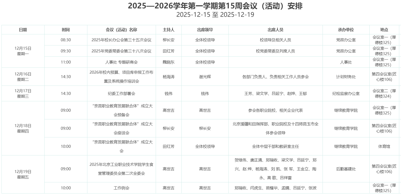 9月15日下午,学校在匠心楼第四会议室召开了党委全委会2025年第二次会议。党委书记田红芳主持会议,学校党委委员参加会议,相关职能部门和部分二级学院负责人列席会议。 会议传达学习了习近平总书记关于深入贯彻中央八项规定精神的重要指示,以及中央和市委党的建设工作领导小组会议精神,全面总结我校深入贯彻中央八项规定精神学习教育开展情况,并就巩固拓展学习教育成果、推进作风建设常态化长...